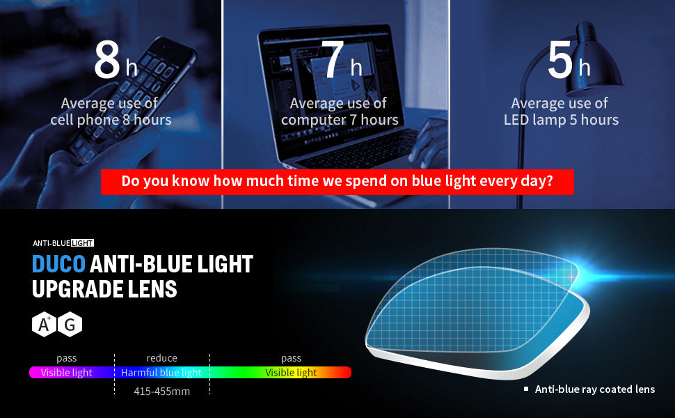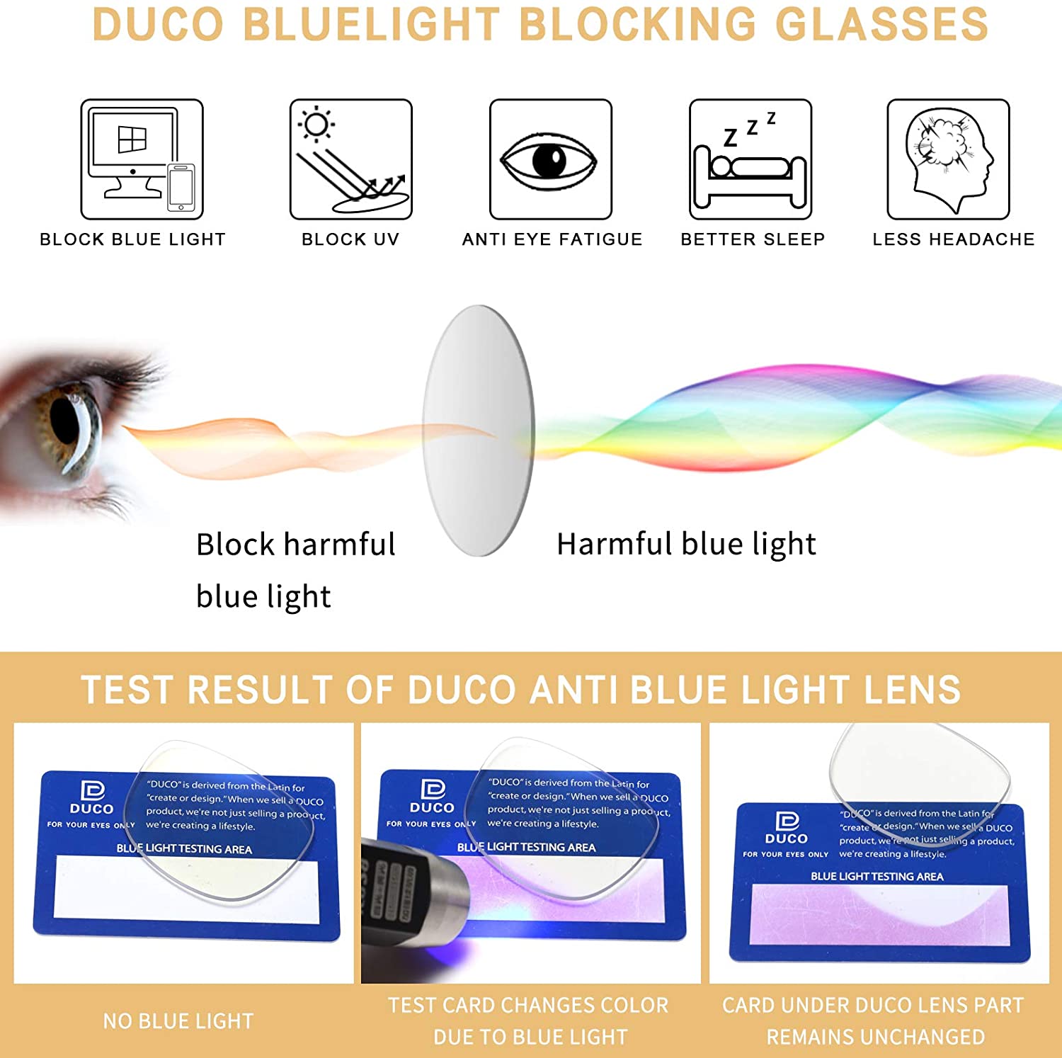 DUCO blue light blocking glasses reduce eye strain, reduce eye fatigue, and improve work efficiency.