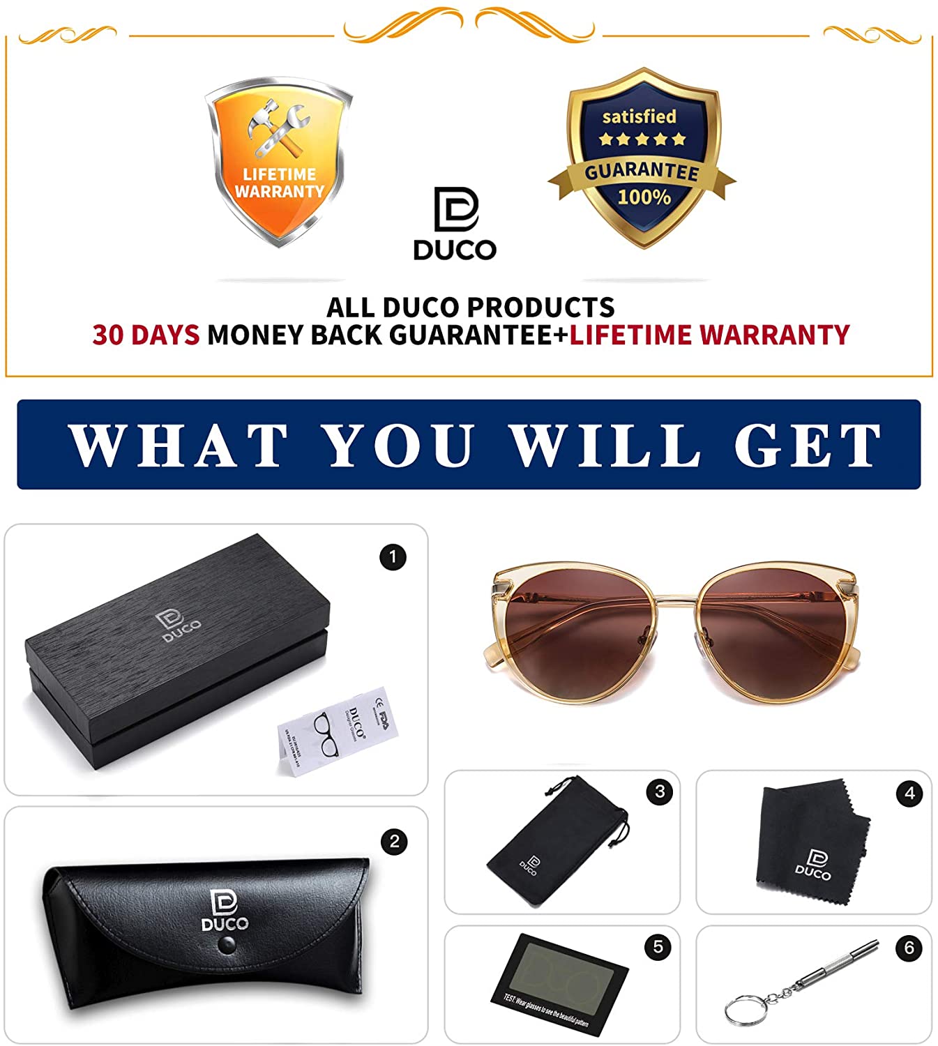 1.Never clean your sunglasses with paper towels or clothing, which can leave scratches. Only use clean water and DUCO's included lens cloth.