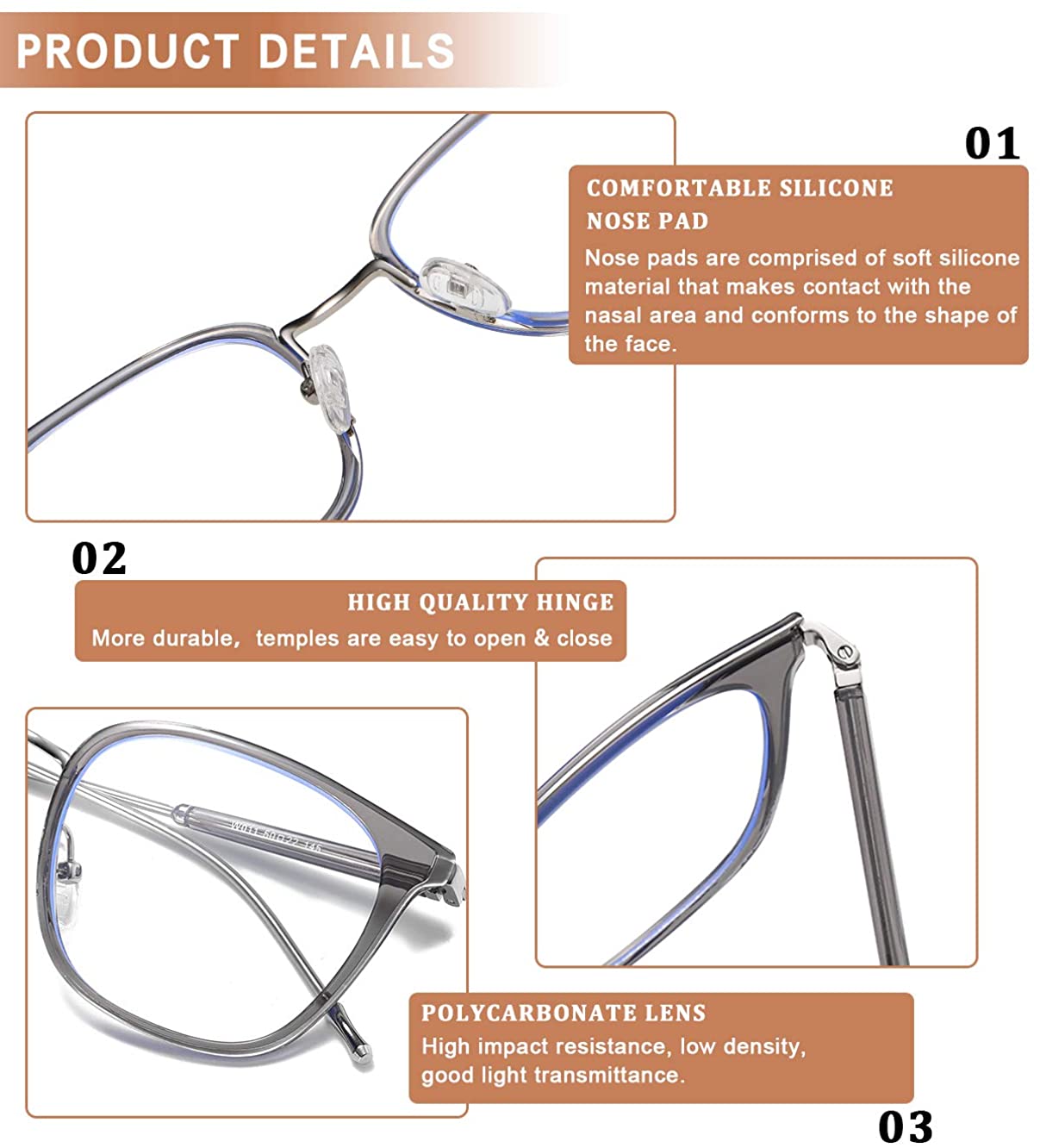 - 🤩[TAKE CARE OF YOUR EYES' HEALTH] These uniquely designed computer glasses include special lenses to reduce glare. Immensely helpful in relieving visual discomfort and fatigue associated with long periods of screen time. A must for the any computer users who have experienced blurred vision, eye strain, or headaches.
