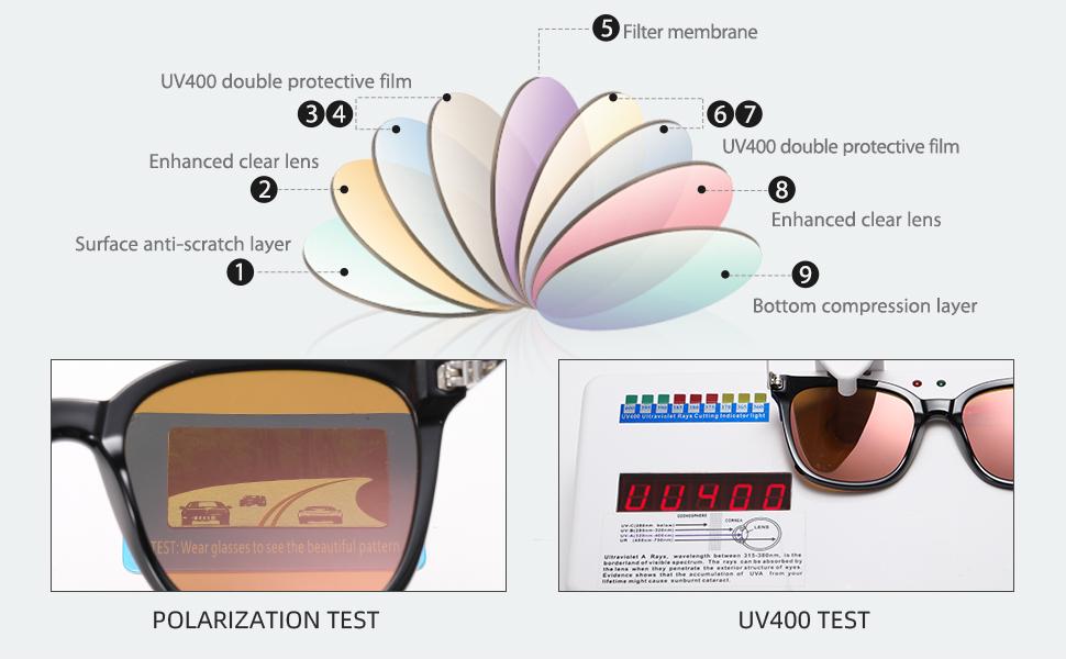2 - 100% reduction in UV400 protection Shatter-resistant polarized lenses can filter out UVA/UVB rays and burn light on surfaces such as water.