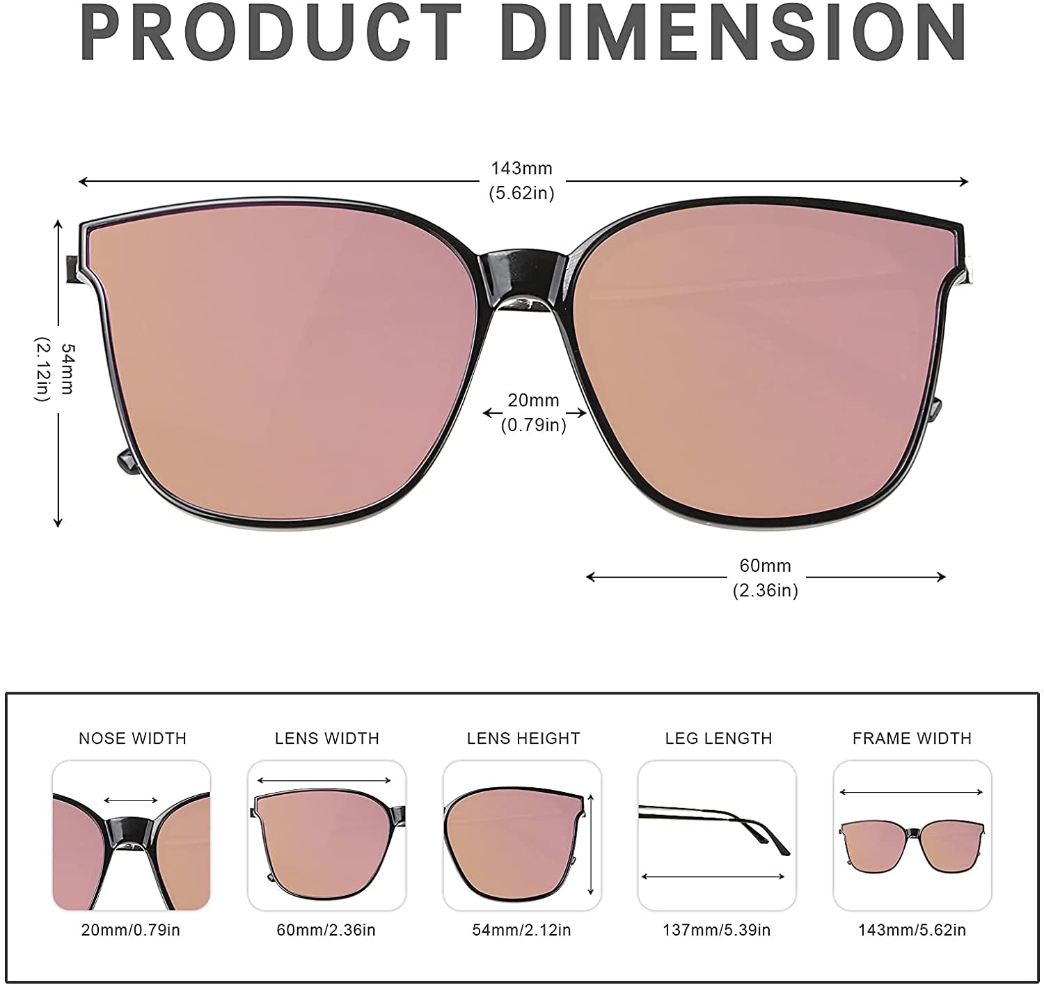 💙【Product Size】Lens Width: 60mm (2.36inches) | Lens Mount Height: 54mm (2.12 inches) | Temple Length: 137mm (5.39 inches) | Nose Bridge: 20mm (0.79 inches).: 143mm (5.62 inches) exist)
