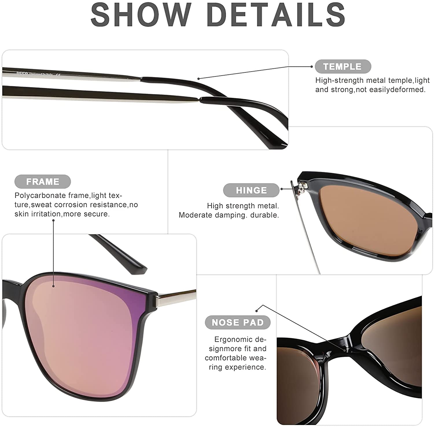 🧡【TAC LENS】DUCO Vintage Sunglasses are polarized sunglasses that reflect the glare that mirrors, water, glitter or diamond material or other types of sun rays can reflect.