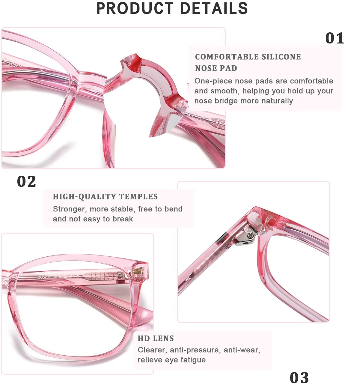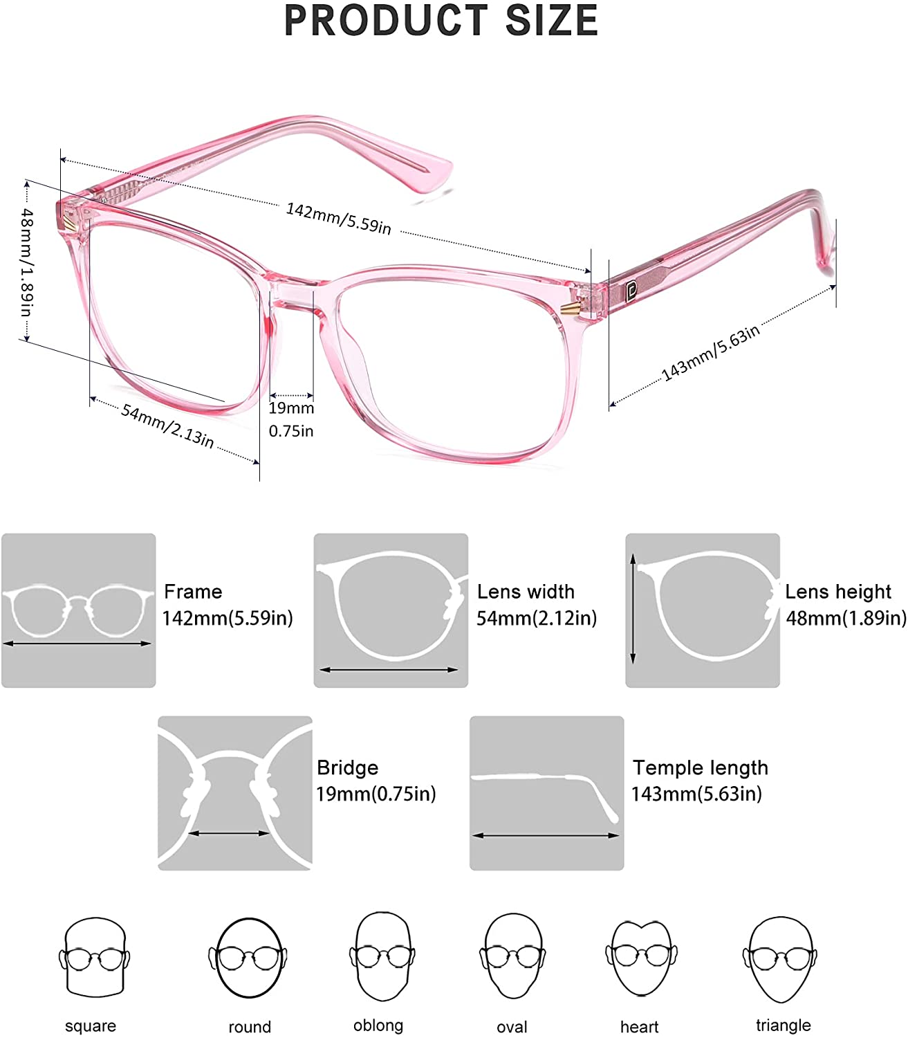 - 🤩【Anti-blue light Lenses】Professional-grade anti-blue light glasses are designed to relieve the wearer’s fatigue. The blue light blocking glasses can effectively block harmful blue light from smart electronic devices, mobile phones, monitors, games, etc. Solve the causes of eye fatigue and headaches from the root cause.