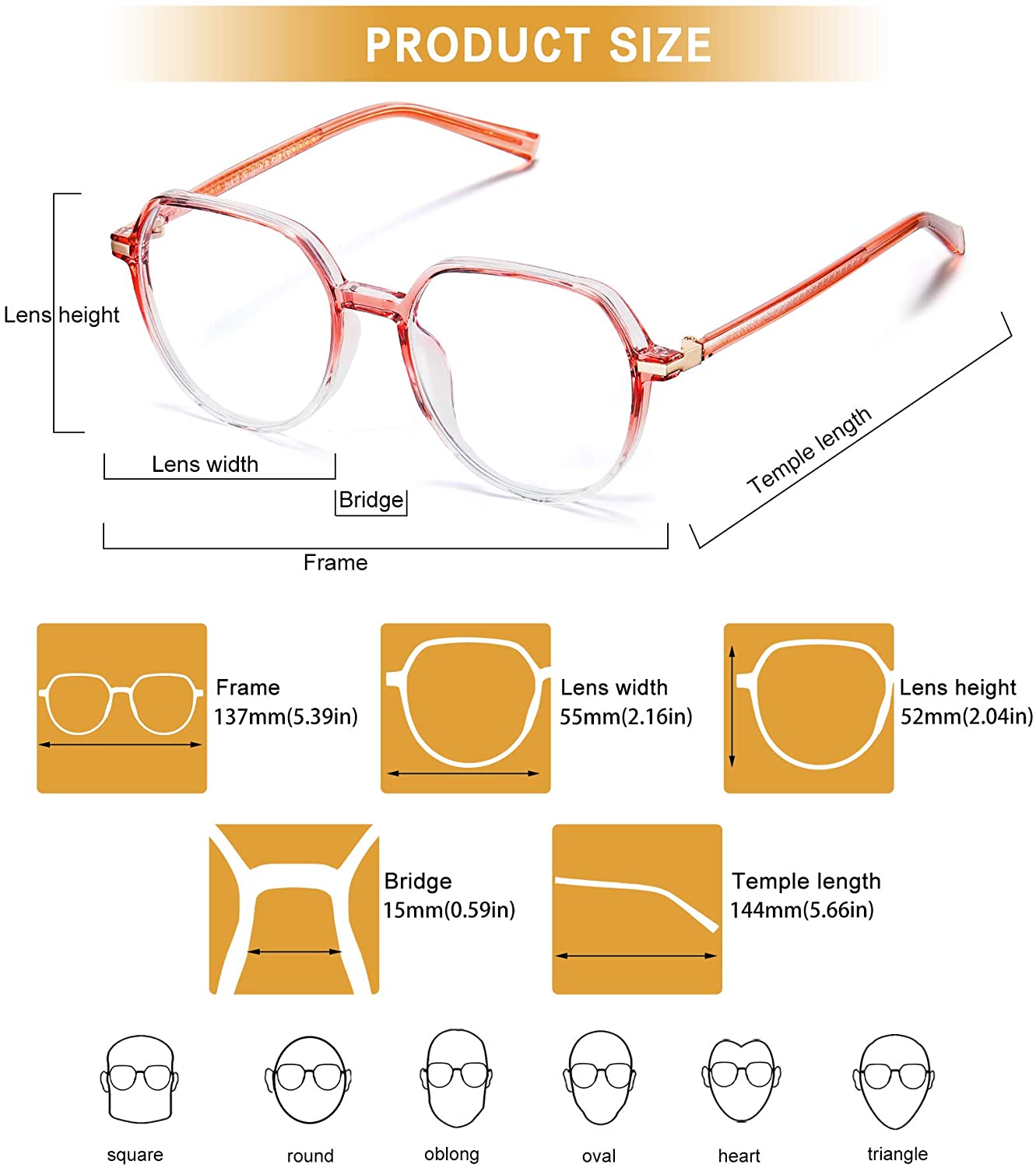 - 🤩[SUPERIOR LIGHT FILTERING] Our glasses offer superior protection from blue light through the use of multiple coatings of blue light filter layers, both inside and out. Product Size: frame width 137mm(5.39in) lens width 55mm(2.16in) lens height:52mm(2.04in) bridge:15mm(0.59in) temple length:144(5.66in)