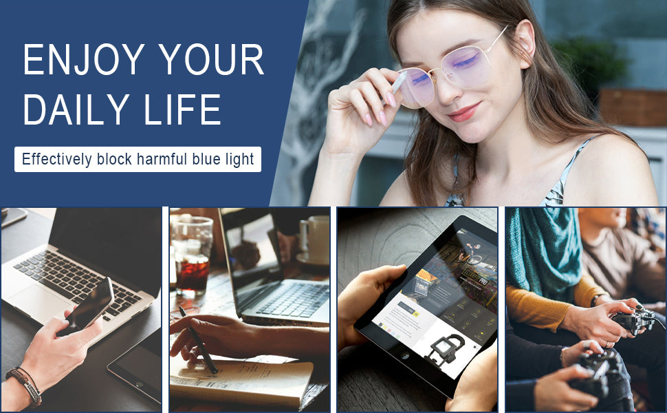- 🤗【Low chromatic aberration lenses】Our anti-blue light glasses use low chromatic aberration lenses to restore the real world. Unlike other blue light blockers with dark and light lenses on the market, you can see and perceive the color world more clearly. Our low chromatic aberration lens has been optimized to achieve the perfect balance between eye protection and improved viewing quality.